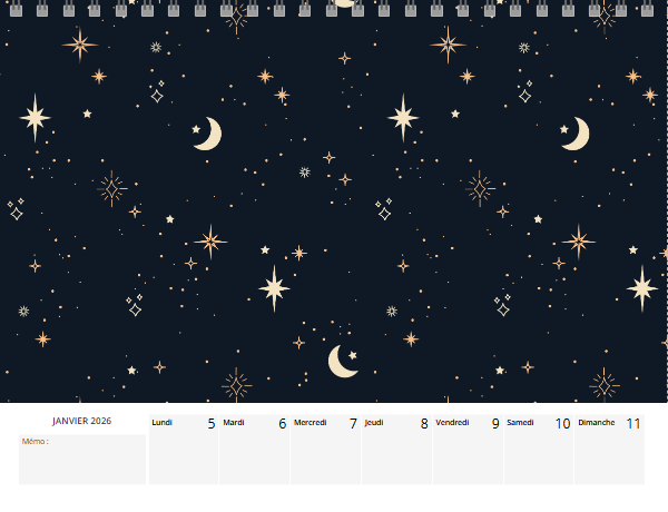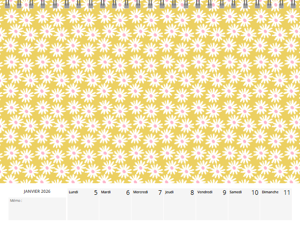Avec son format bureau, et une page dédiée à chaque semaine, vos lundis matins seront plus doux ! Et oui… Quoi de mieux que de commencer la semaine au bureau en tournant une page de son calendrier et, de découvrir de nouvelles photos qui vous rappelleront de beaux souvenirs. Si vous avez dans votre entourage une personne qui n’aime pas les lundis, c’est le cadeau qui lui faut pour lui apporter de la bonne humeur pour bien commencer la semaine ! Pour encore plus de gaité au fil des jours, mixez tout au long de l’année des fonds créatifs.
