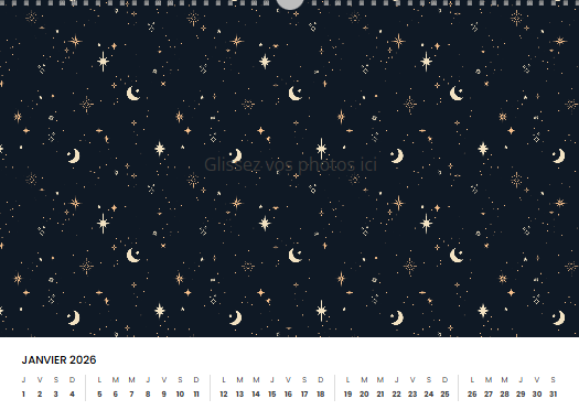 Et parce qu’il doit vous ressembler, personnalisez le design de chaque mois en choisissant les fonds de page qui mettent vos photos à l’honneur. Envie d’un rendu encore plus chic ? Optez pour l’option “pages vernies” et offrez à vos images des couleurs éclatantes et une finition brillante.