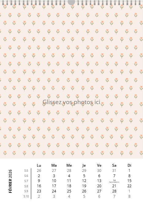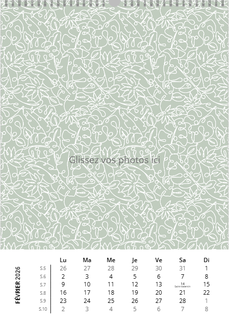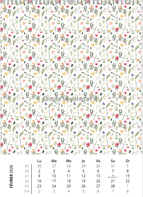 Caractéristiques du Calendrier mural A4 portrait éco-conçu