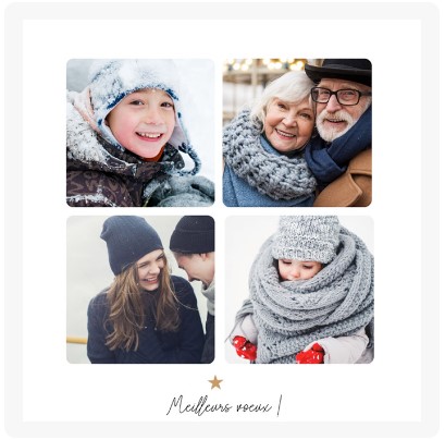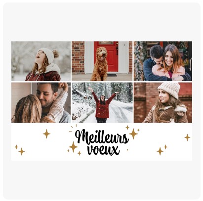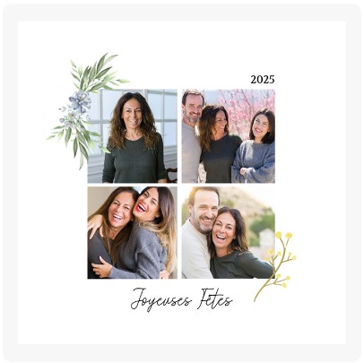 Pour les fêtes de fin d'année, envoyez des vœux créatifs et personnalisés ! Une photo en couple, en famille ou de beaux visuels, un petit texte et hop, c'est parti. En plus, nous vous offrons les enveloppes.
