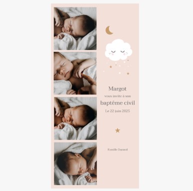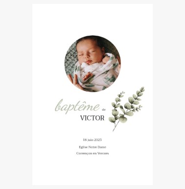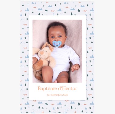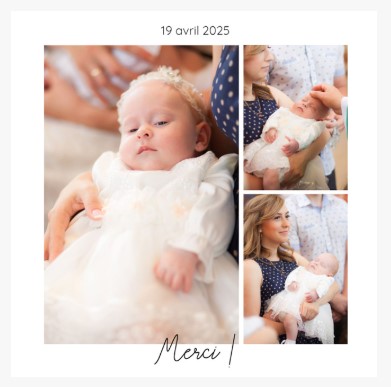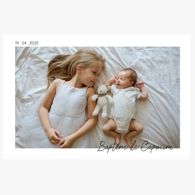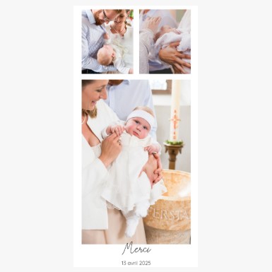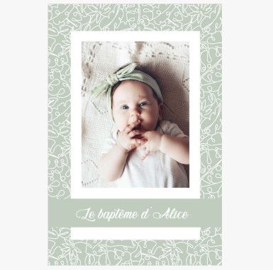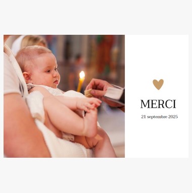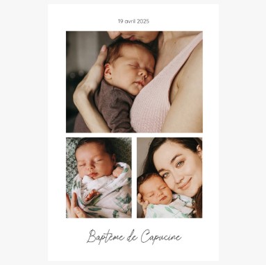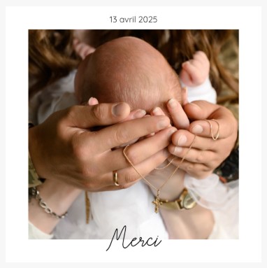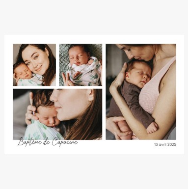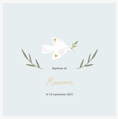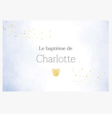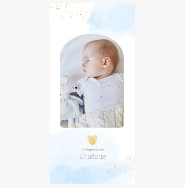 Le baptême est un événement fort de sens, unique dans la vie d'une personne et de son entourage. Pour retranscrire cet engagement, faites le choix d'un faire-part personnalisé et unique. Choisissez votre format (portrait ou paysage) et nous vous offrons les enveloppes Clairefontaine, reconnues pour leur qualité. Notre équipe de graphistes a conçu un florilège de modèles et visuels spécialement pour vous, de quoi vous satisfaire à coup sûr.