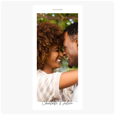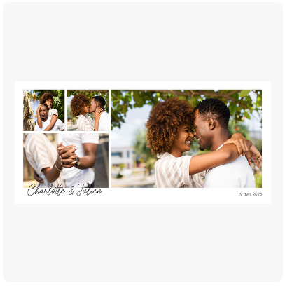 Partagez votre "Oui" à vos proches avec un faire-part personnalisé qui VOUS correspond. Laissez libre cours à votre imagination en personnalisant ce faire-part à votre image avec vos plus belles photos et vos propres textes ! Que vous soyez plutôt portrait ou paysage, nous avons pensé à vous avec nos 5 formats (et en plus, nous vous offrons les enveloppes Clairefontaine, c'est cadeau). Notre équipe de graphistes a concocté un florilège de modèles et visuels pour tous les goûts !